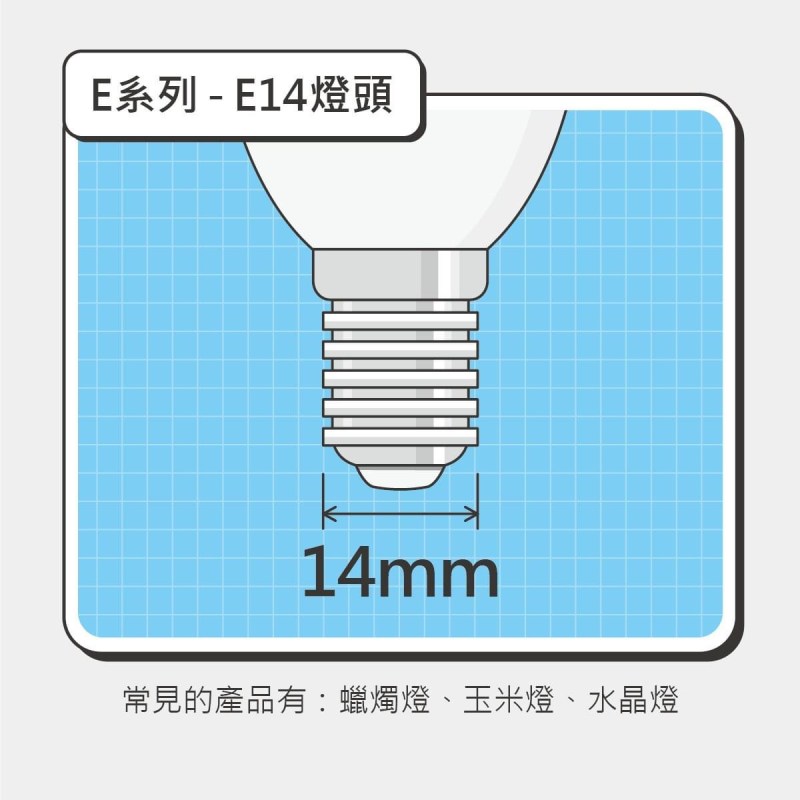 商品指南燈頭有哪些規格? 每當要購買新的照明產品時,站在賣場貨架前是不是會猶豫手上產品的燈頭正不正確?今天來說明常見燈泡、燈管的燈頭規格,燈頭普遍分成兩種系列,將來就不必帶著舊照明產品逛賣場嚕! E系列 — 即為旋轉式燈頭,是由美國科學家愛迪生發明,常見的規格有E12、E14、E27、E40。 G系列 — 即為插入式燈頭,是由加拿大發明家范信達所發明,通常有兩根凸出的插腳做為觸點,常見的規格有GU5.3、G5、G13。 文章分享 分享到 Telegram(在新視窗中開啟) Telegram 以電子郵件將連結傳送給朋友(在新視窗中開啟) 電子郵件 更多 分享到 WhatsApp(在新視窗中開啟) WhatsApp 請按讚:喜歡 正在載入...
