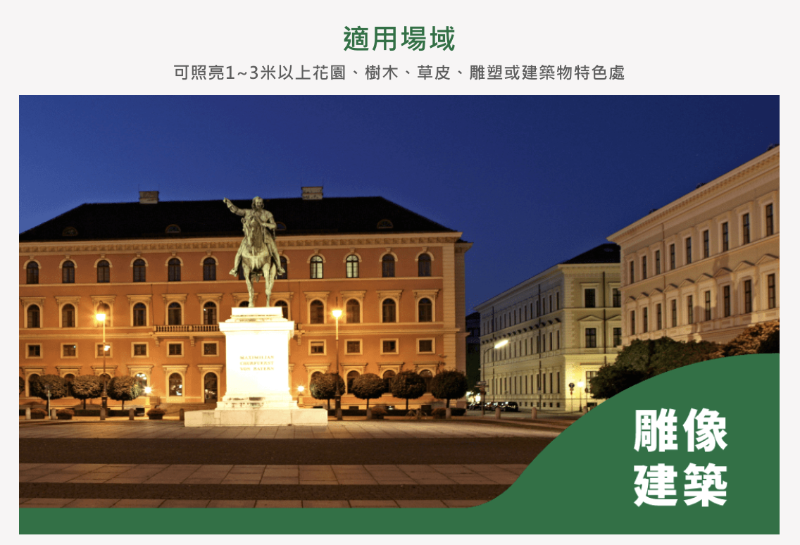 3. 適用 3-6 米花園、樹木、草皮、雕塑或建築物特色處