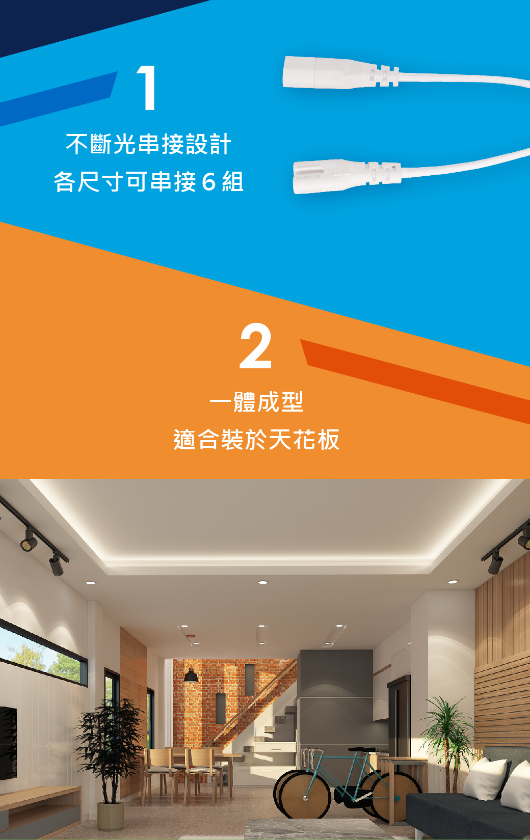 ※ 最多可串接 6 組,請將串接線與燈體緊密串接,避免燒毀 ※ 串接線需另購