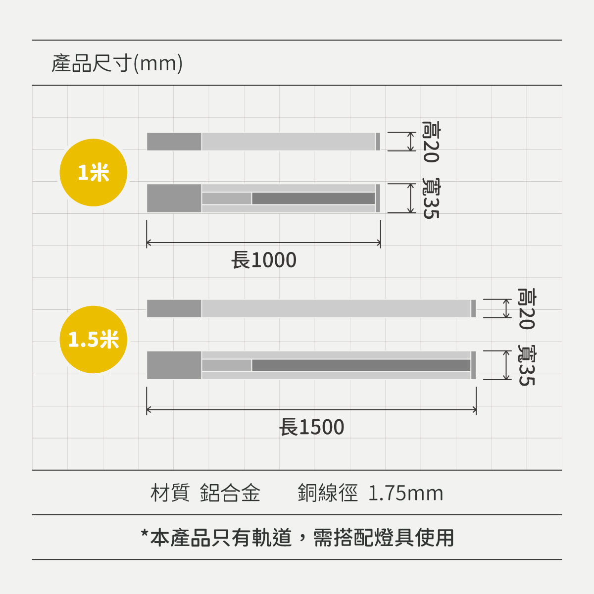 ⦁ 二線式軌道,銅線徑1.75mm