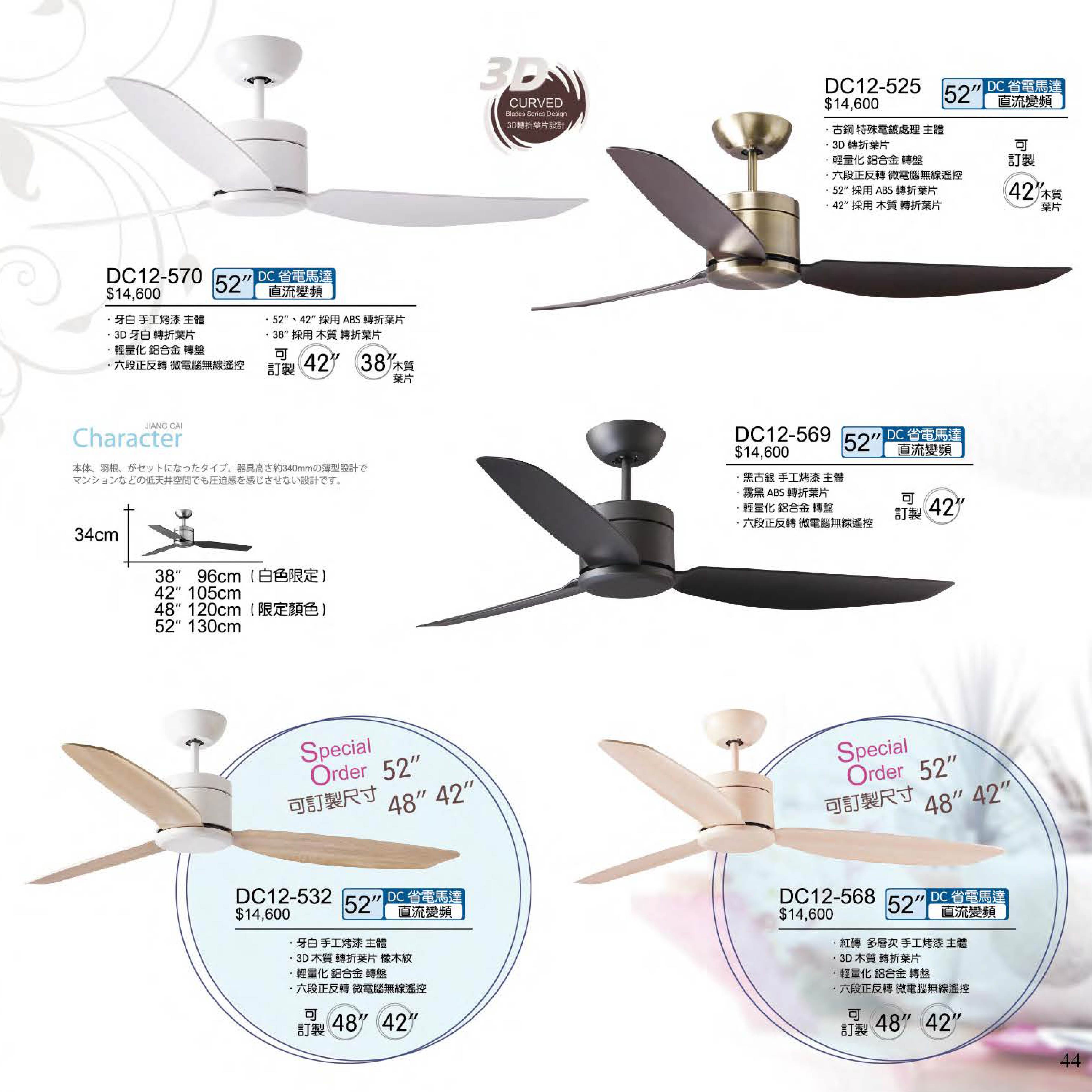 ●DC12-570 牙白 52”(ABS葉片)/可訂製:38”(木質葉片)/42”(ABS葉片)