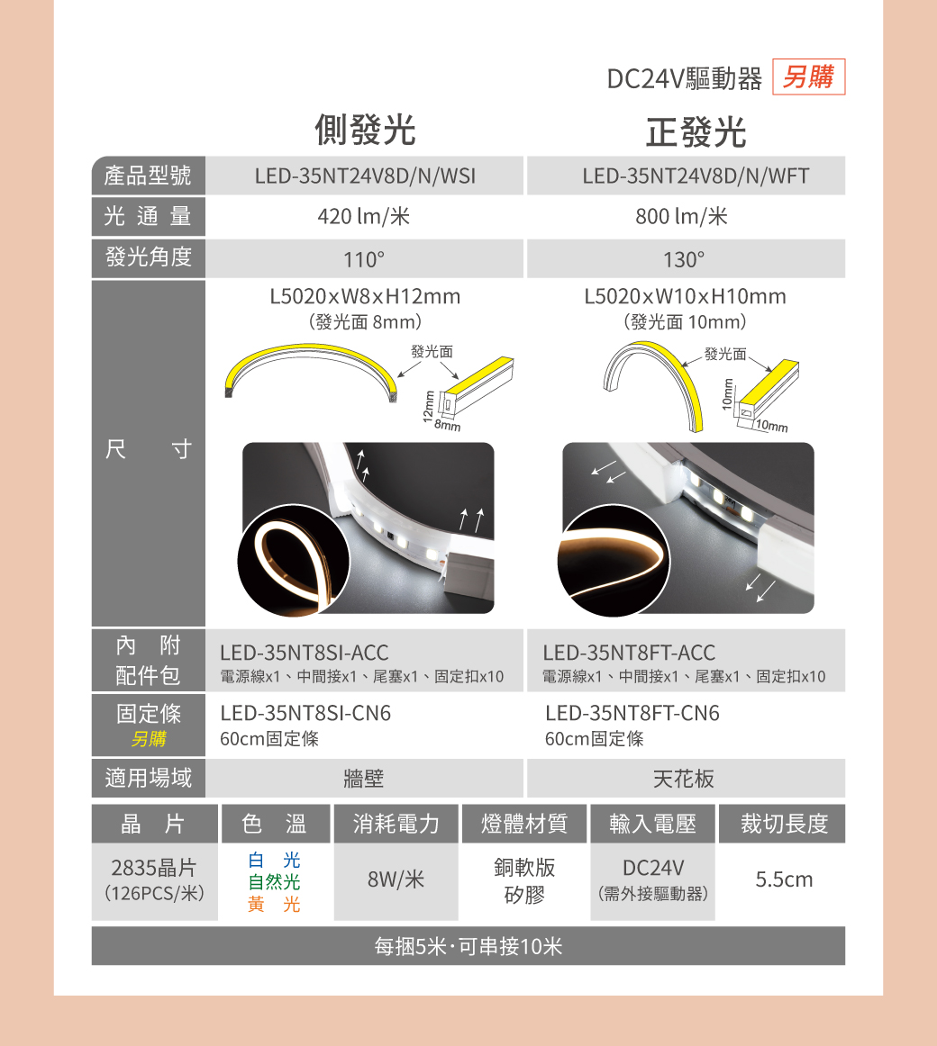 側發光尺寸:L5020mmH12mmW8mm(每綑5米)