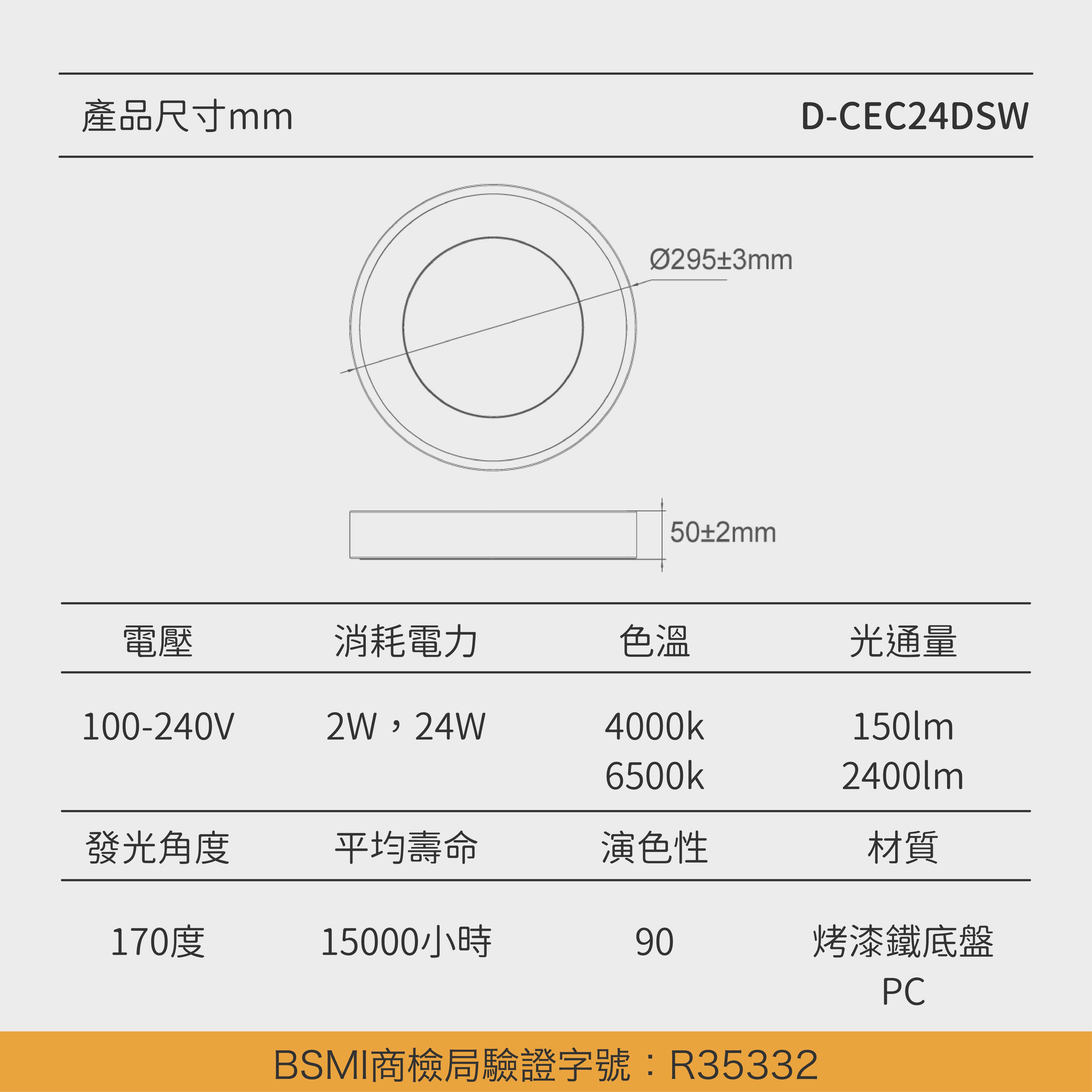 ✦ 超高演色性RA≧90 ✦ 一體成形金屬外殼 ✦ 兩段壁切模式 ✦ 24W小巧燈體