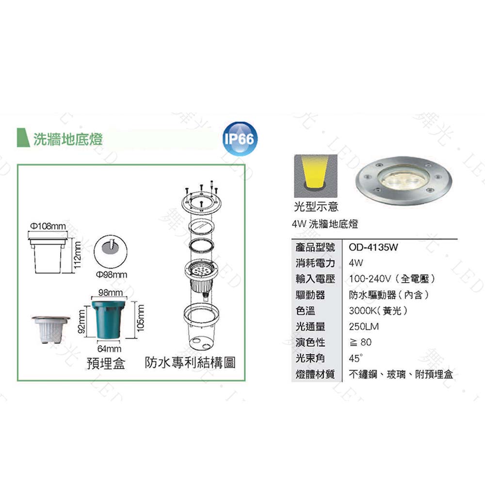 《舞光 洗牆地底燈 4W 黃光 附預埋盒》