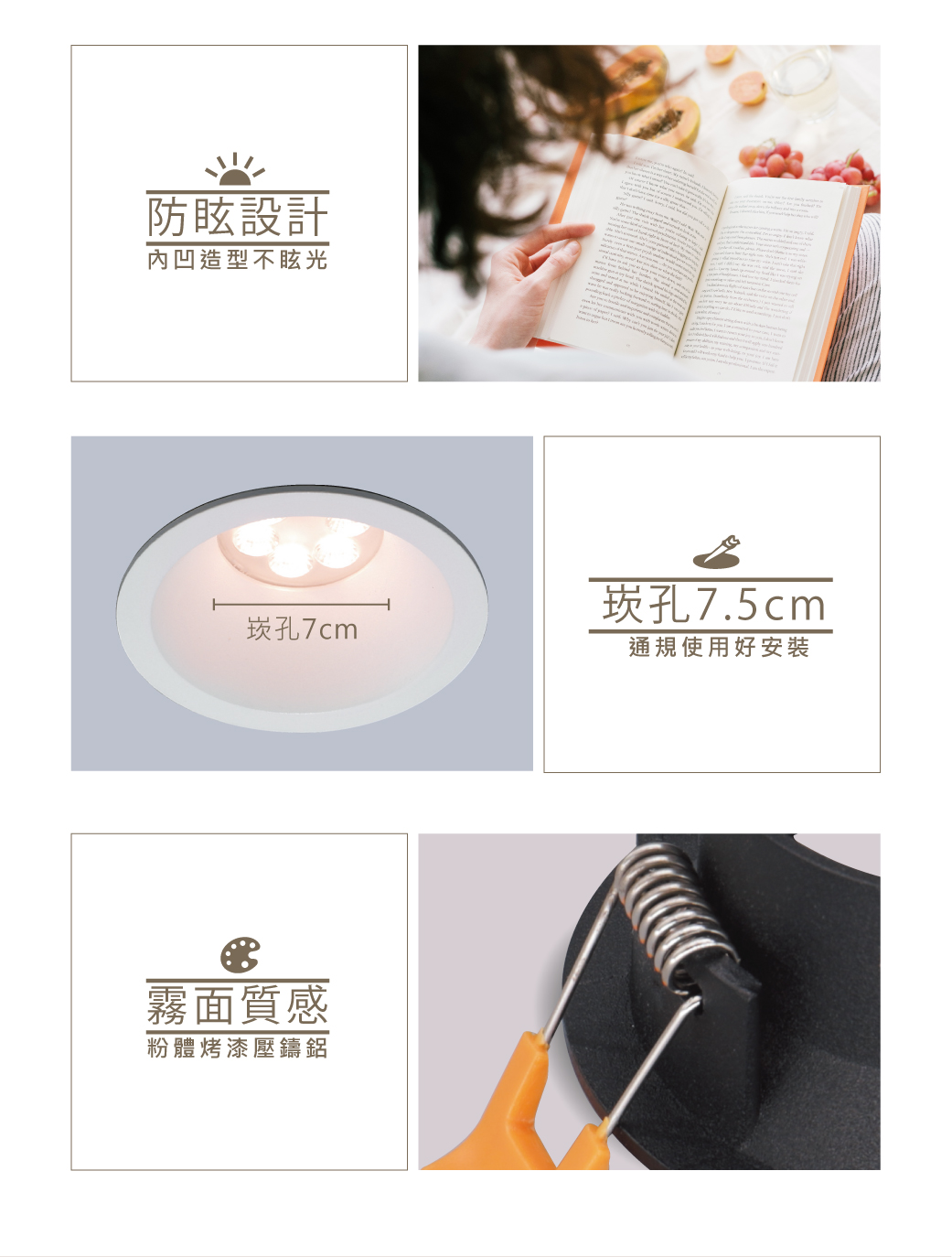 1. 光源內凹防眩型設計