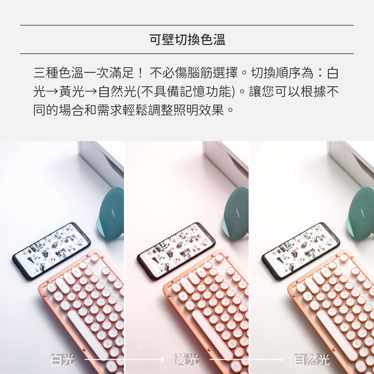 ⦁ 可壁切換三段色溫(不具備記憶功能)