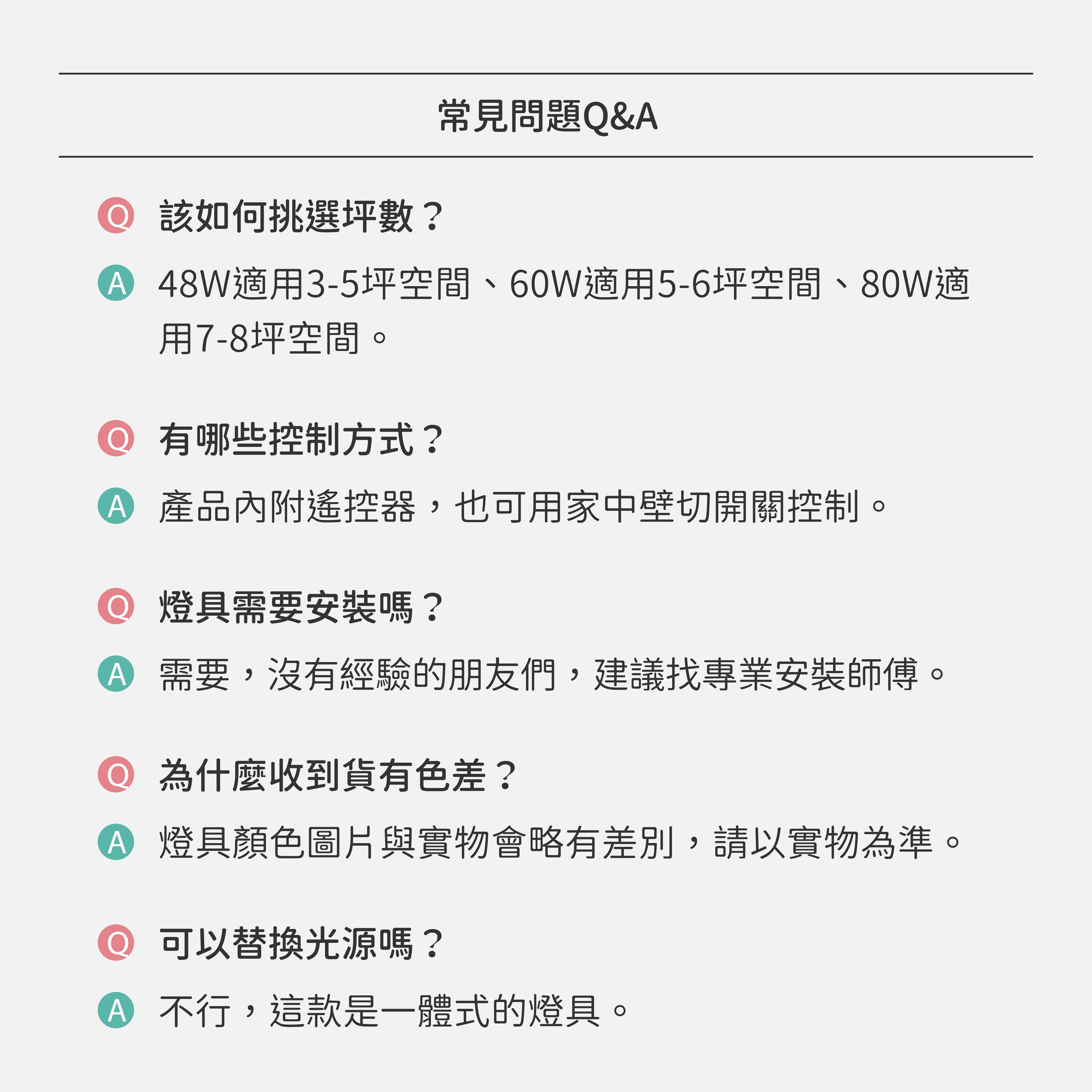 ⦁ 控制方式:遙控器+壁控(壁控開關不配備)