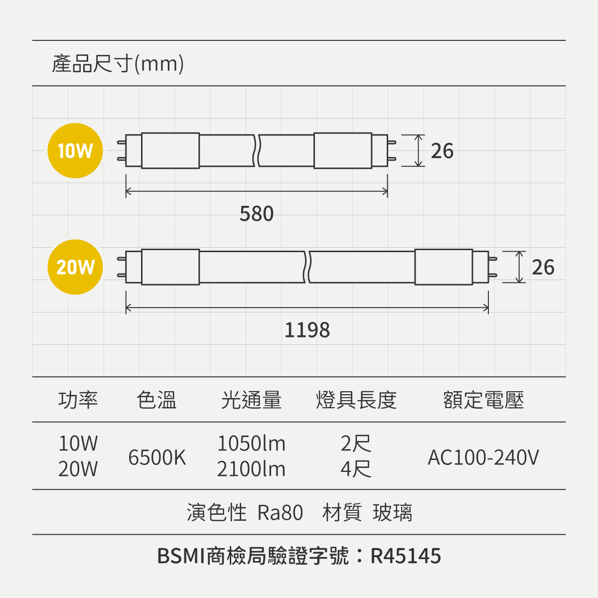 ⦁ 燈管長度:4尺