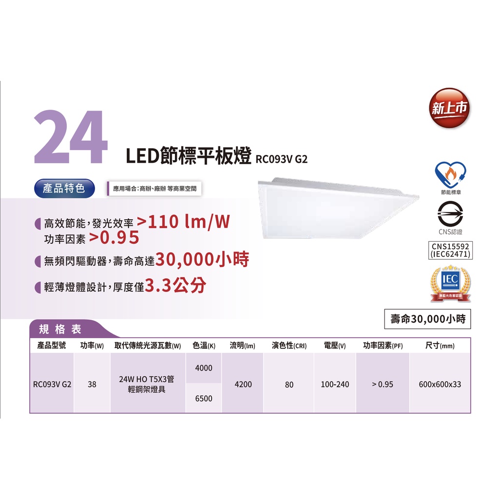 ◆名 稱: PHILIPS 飛利浦 LED 平板燈 (RC093V G2)