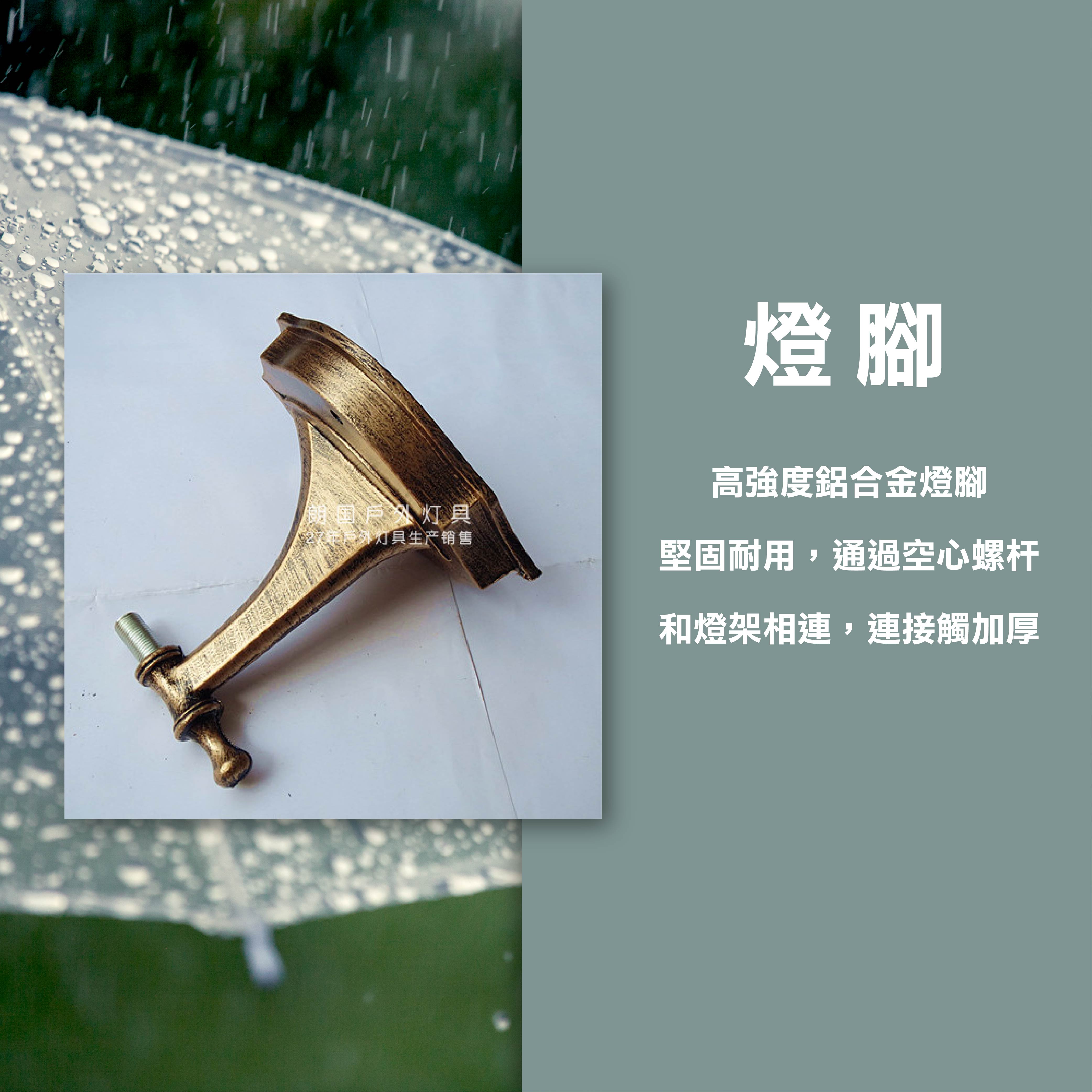 1. 替換式設計,依照情境轉換不同色溫 2. 歐風奢華古典設計 3. 適用建築外牆、門廊等