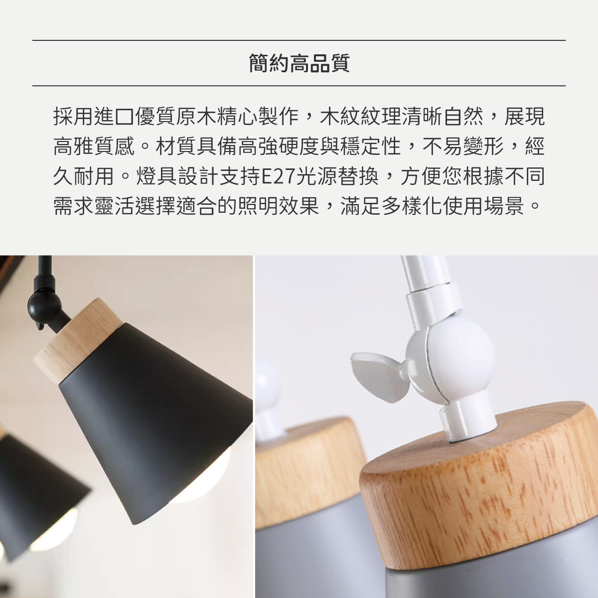 ⦁ 搭配E27燈座,可替換光源,使用最方便
